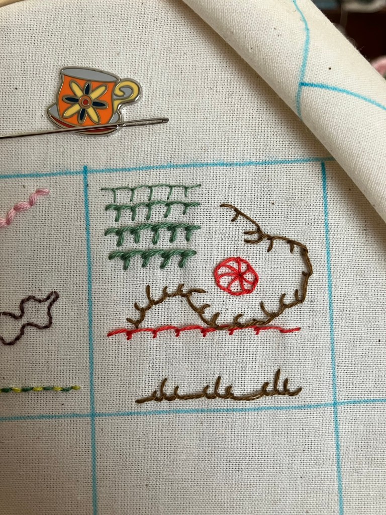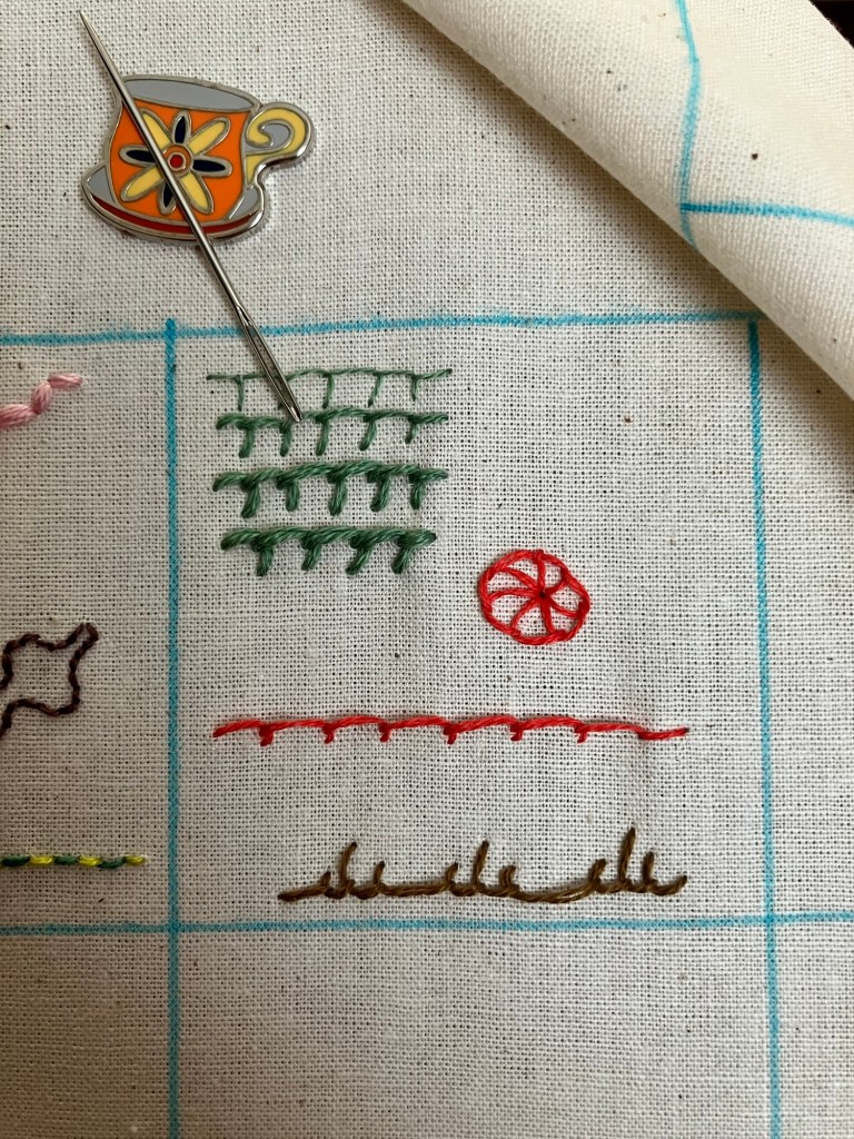 I was surprised to see that the blanket stitch was the second stitch listed in The Floss Box Embroidery Book. It’s not challenging, but I sort of expected more outline stitches?